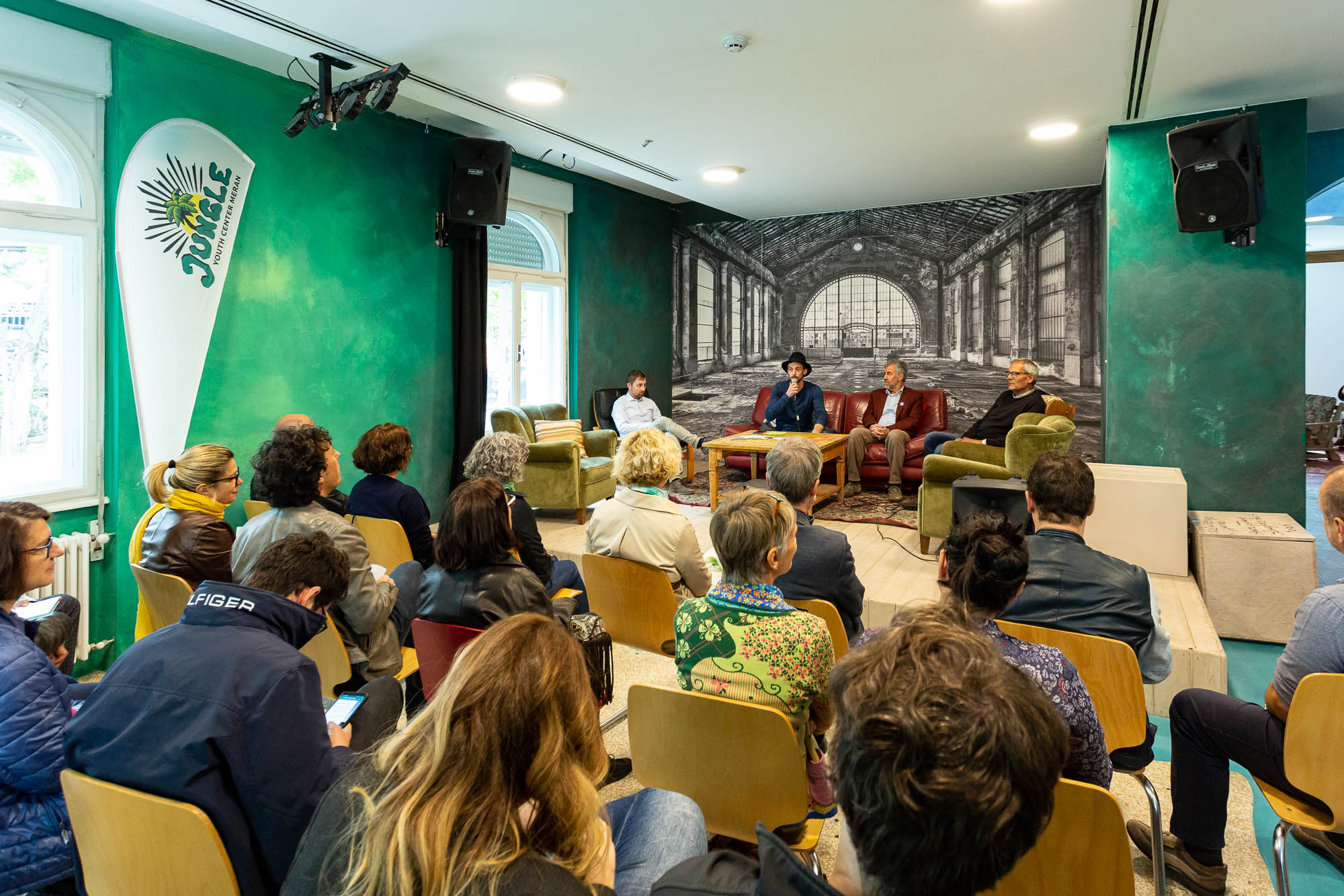 Die Feier begann um 15.00 Uhr mit der Ansprache verschiedener Vertreter: Besay Mayer (Leiter des Jungle), Christian Stizzoli (Präsident des Verein Jugend Aktiv), Paul Rösch (Bürgermeister von Meran), Klaus Nothdurfter (Amtsdirektor des Amtes für Jugendarbeit der Provinz Bozen). Anschließend wurde das Haus gesegnet und die Besucher konnten das gesamte Gebäude und das Areal bestaunen. Zudem gab es kleine Snacks, Getränke und Live-Musik.