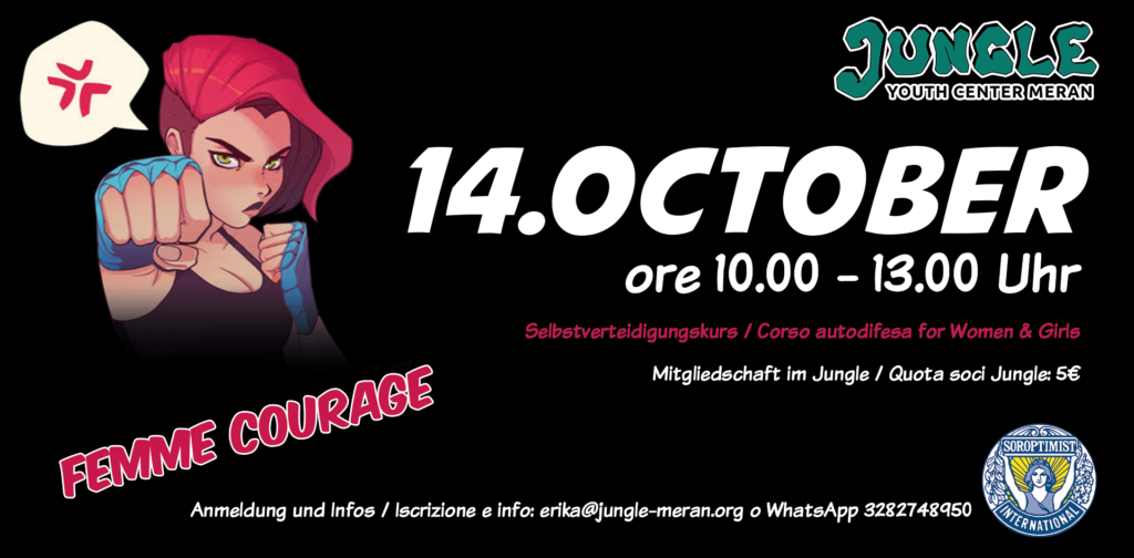 Am 14. Oktober findet der Selbstverteidigungskurs für Mädchen und Frauen im Jungle statt. Dieser ist...