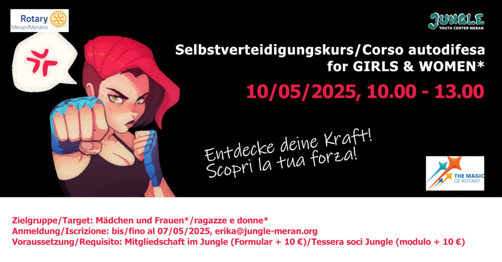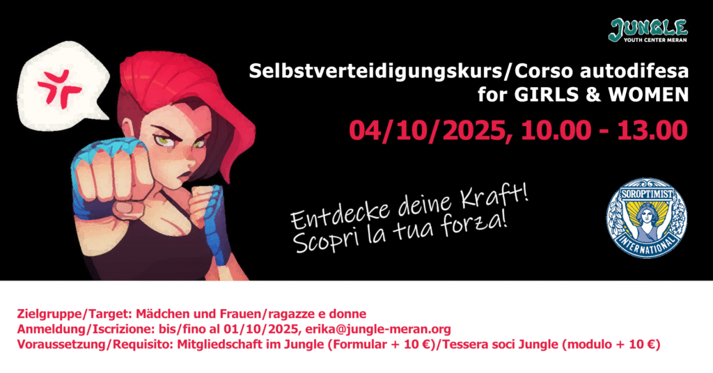 Der Selbstbehauptungskurs für Mädchen* und Frauen* am 30.09.2023 im Jugendzentrum Jungle Meran zielt...