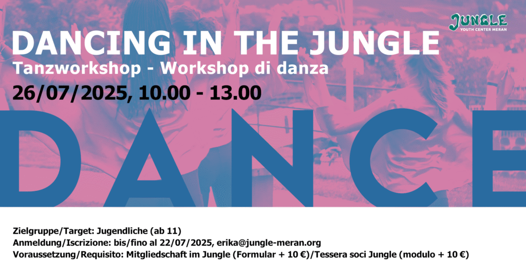 Tanz! Am besten aus der Reihe!Beim Workshop am 26. Juli im Jugendzentrum Jungle werden wir zusammen...
