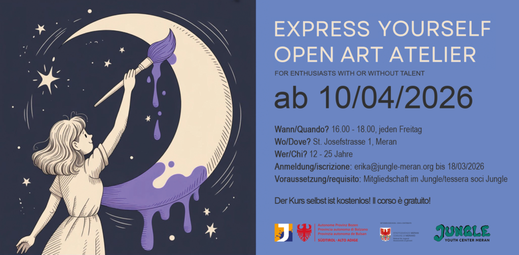 Ein offenes Kunstatelier für alle Jugendlichen im Jugendzentrum Jungle in Meran! Von März bis Juni...