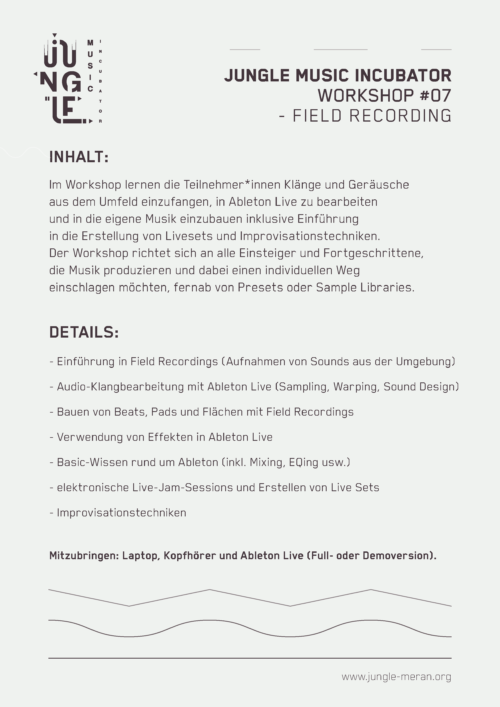 Tutto questo al Jungle Music Incubator Field Recording Workshop al BASIS Vinschgau il 13/11/21.